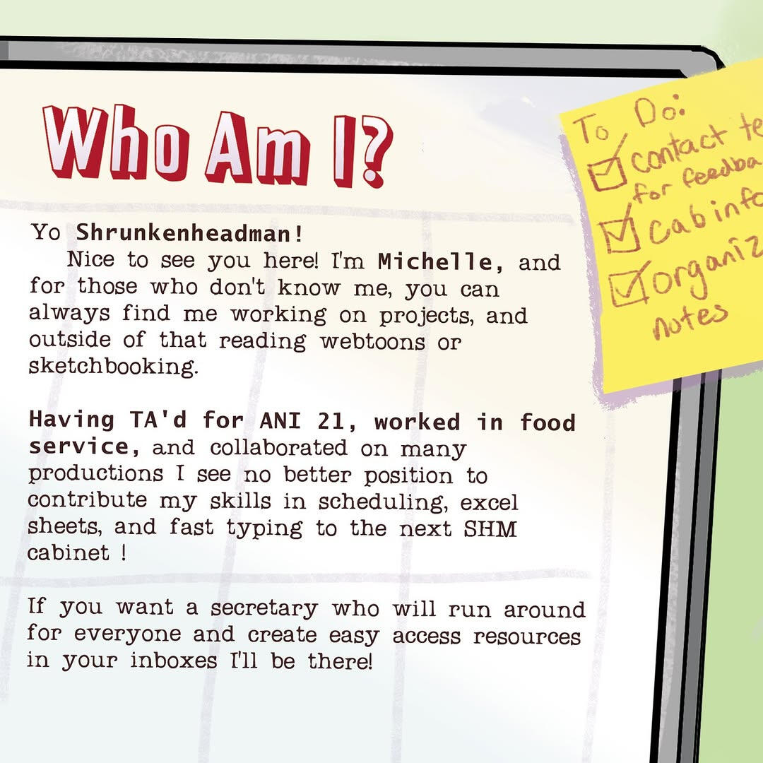 Running for secretary position during Shrunkenheadman Cabinet positions. Ran a social media campaign across the 4 week period.