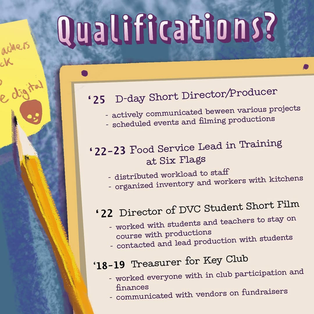 My name is Michelle Toyama, and I am a Bay Area based artist and current student at San Jose State University pursuing Animation/Illustration BFA.I have a strong passion for working on productions and developing effective production management coordination for the animation production pipeline. My drive for animation stem from working on creative and collaborative projects from my time in theater and in volunteering. Whether it's working on the project organization or contributing creative input on projects. I value clear and direct communication under teams and will thrive on team-based productions.Outside of work I love skateboarding, painting nails, watching films, experimenting with music production, making random foods, singing, and dancing.if you wish to reach out for work my email is:[email protected]